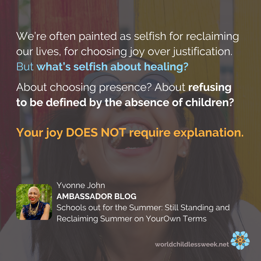 We’re often painted as selfish for reclaiming our lives, for choosing joy over justification. But what’s selfish about healing? About choosing presence? About refusing to be defined by the absence of children? Your joy does not require explanation.