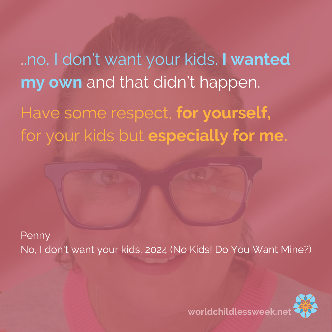 Have yours? No, I am offended that you feel you can say that to me. I simultaneously know you don’t really mean it, wonder why you would dangle that privilege you had in front of me and I also know that kids want their own parents ahead of anything. I feel that rejection of the children thrown into this washing machine of feelings by the unknowing offspring from a throw away comment and the whole thing is awkward and offensive. So no, I don’t want your kids. I wanted my own and that didn’t happen. Have some respect, for yourself, for your kids but especially for me.
