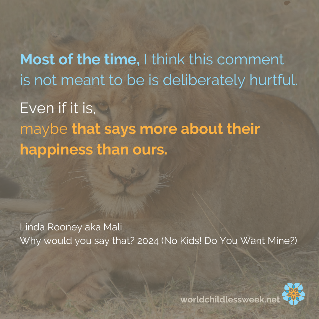 Most of the time, I think this comment is not meant to be is deliberately hurtful. Even if it is, maybe that says more about their happiness than ours. I think there is often misunderstanding about our lives – on both sides. Thinking this way helps me deal with insensitive comments like these. They always say so much more about the person who utters these thoughtless or unkind statements than they do about us.