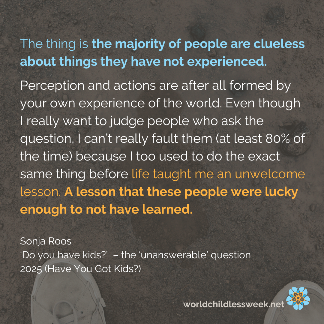 Relinquishing the hope, changed me, but it didn’t change the heaviness of the question. It has been a couple of years that we have been childless not by choice and the question whether we have kids or not, is still one that I don’t always know how to answer. I don’t want to be rude but I am also not willing to be vulnerable with those who don’t deserve it.