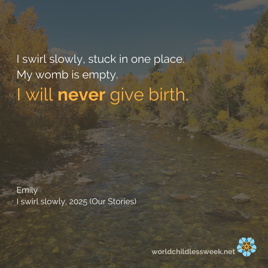 I swirl slowly, stuck in one place. My womb is empty. I will never give birth. I will never feel little arms around my neck.