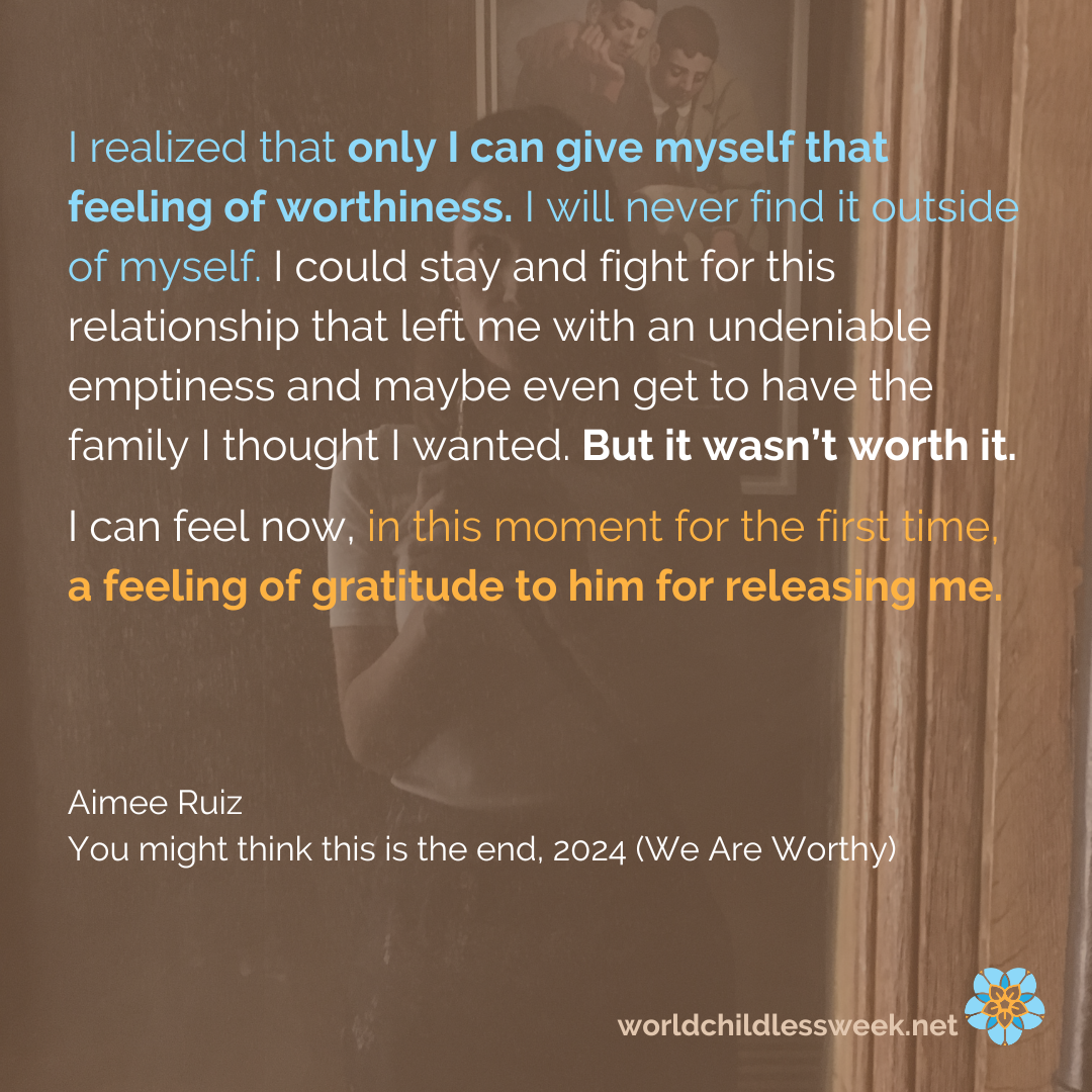 That night, my 40th birthday, one that I’ll never get back, provided the moment of clarity I needed. It had to be that loud for me to see that I wanted to be chosen so badly, to feel closer to the possibility of mothering that I was willing to sacrifice my own happiness to show the world that I had been worthy of being chosen. I realized that only I can give myself that feeling of worthiness. I will never find it outside of myself. I could stay and fight for this relationship that left me with an undeniable emptiness and maybe even get to have the family I thought I wanted. But it wasn’t worth it.
