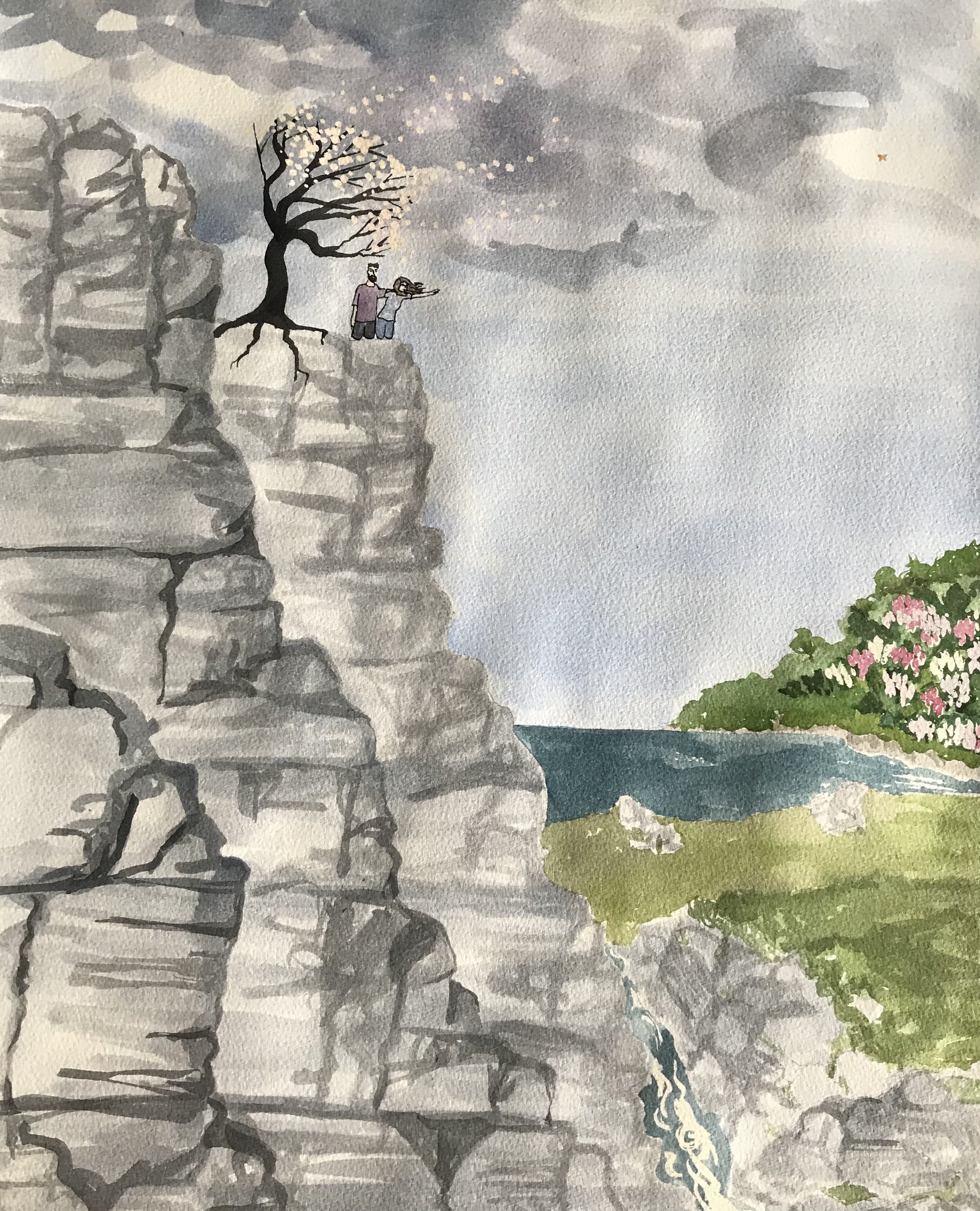 The first painting captures emotions at the end of our second and final fertility treatment, following several years of trying to conceive, a journey which ended with an early miscarriage. It marks the moment of letting go of hope, having strived and reached so far to make the impossible happen. I shared it as part of World Childless Week 2020. It is called Hope, out of reach.
