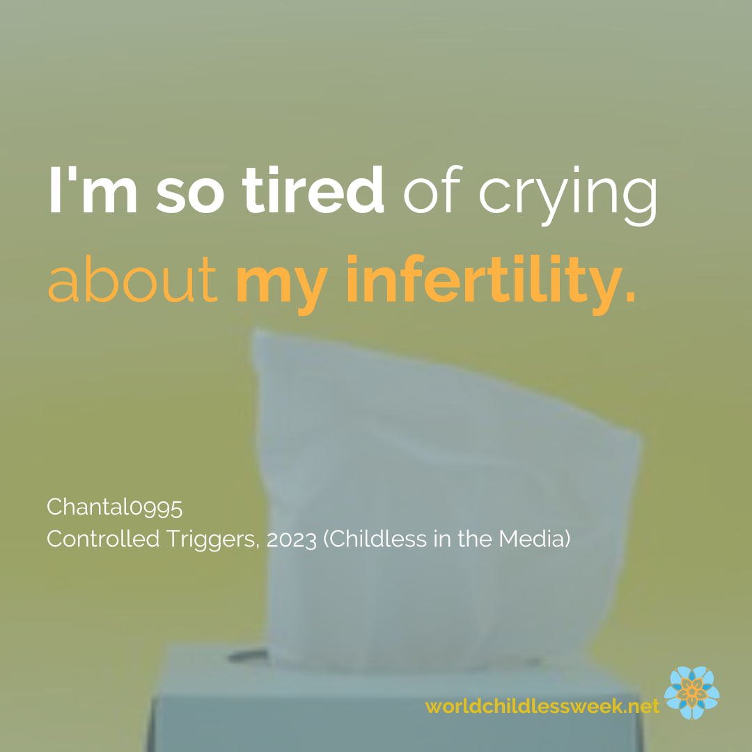 The trigger: It reminds me that I watch from the sidelines while everyone else is living the life I desperately wanted. I'm so tired of crying about my infertility. So I rarely watch anymore to avoid the trigger.