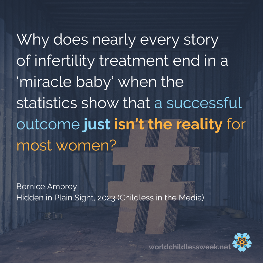 Why is it proving so hard for the media industry to include the stories and lives of childless women and men? Why does nearly every story of infertility treatment end in a ‘miracle baby’ when the statistics show that a successful outcome just isn’t the reality for most women? Why do women without children get reduced to characters of pity or shame in tv and film?