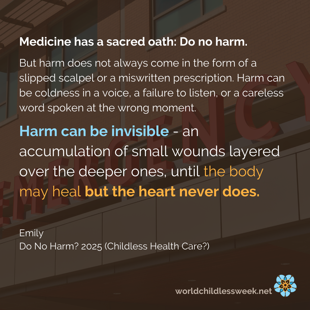 But harm does not always come in the form of a slipped scalpel or a miswritten prescription. Harm can be coldness in a voice, a failure to listen, or a careless word spoken at the wrong moment. Harm can be invisible - an accumulation of small wounds layered over the deeper ones, until the body may heal but the heart never does.