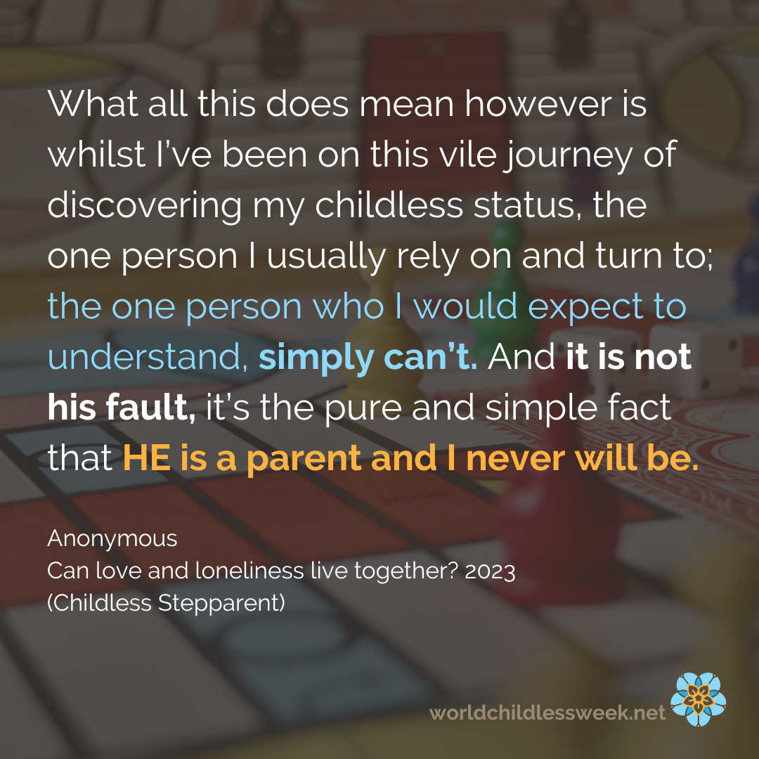 What all this does mean however is whilst I’ve been on this vile journey of discovering my childless status, the one person I usually rely on and turn to; the one person who I would expect to understand, simply can’t. And it is not his fault, it’s the pure and simple fact that he is a parent and I never will be.