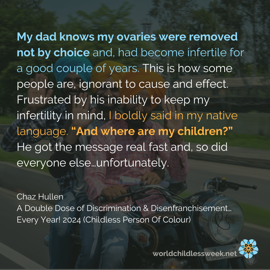 Pro-natalism might be experienced in similar ways across the globe or rather by all childless people, but experiencing twice every year is double the pain, double the disenfranchisement and feels like a double dose of grief.