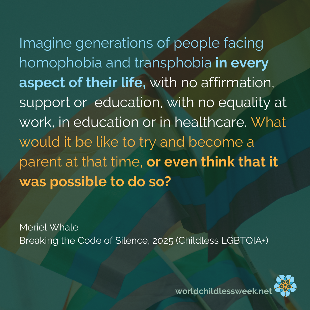 There is a generation of LGBTQIA+ childless people out there and I would like to hear your voices, to invite you to contact me and share your stories, truths and personal histories that will tell the world what it is like to be both LGBTQIA+ and childless not by choice.