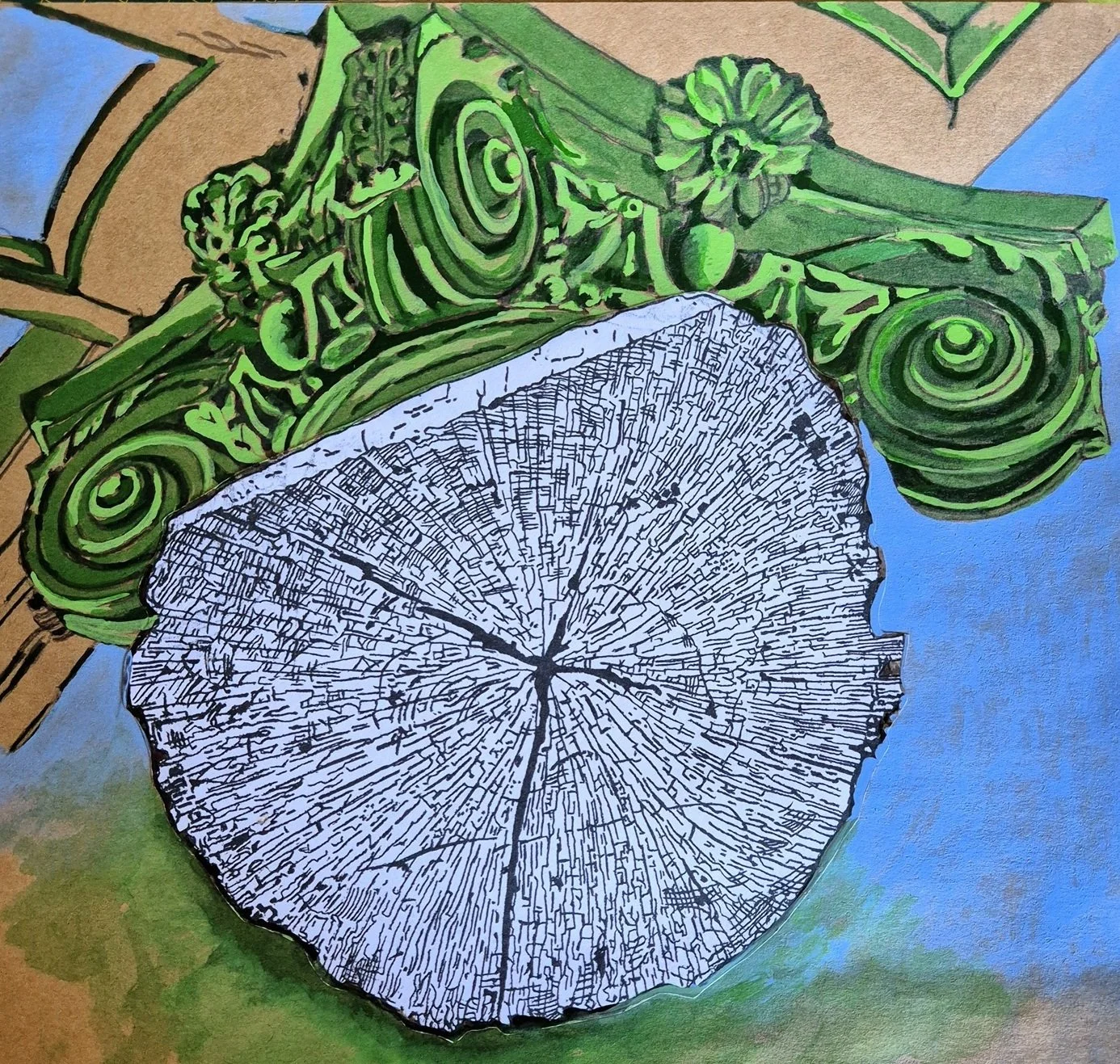 The picture accompanying this post is my own work. It’s a sketchbook study that shows the lifetime of a felled tree through the rings and cracks in the fallen trunk. The column represents human constructs, hierarchy and history, in contrast to the natural form of the tree trunk.The column is actually Corinthian in style, with carved acanthus leaves and scrolls (all ‘natural’ forms) used to adorn it. I'm thinking about my history and legacy, and how people will know my story especially if I have nobody to tell. I'm also thinking about my relationship with nature, because although I can't have children, I still belong to our beautiful planet. All living things leave their story behind in some way, some more visibly than others. We all touch hearts and lives, and our energy is never truly lost. (Ask Albert Einstein!)