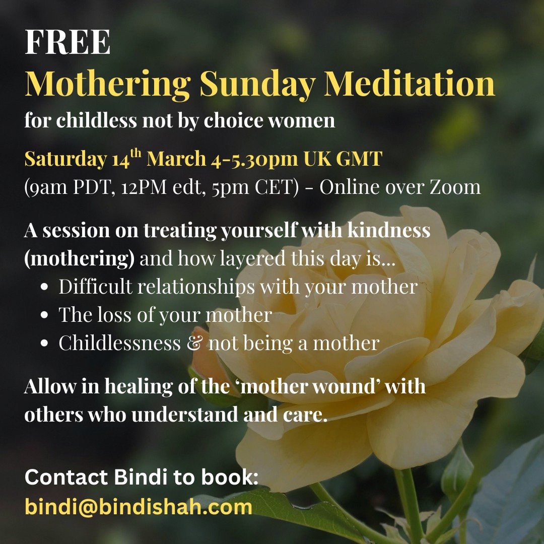 Mother’s Day can be a difficult time for childless not by choice. In this special meditation session, I invite you to come and treat yourself with kindness (mothering).