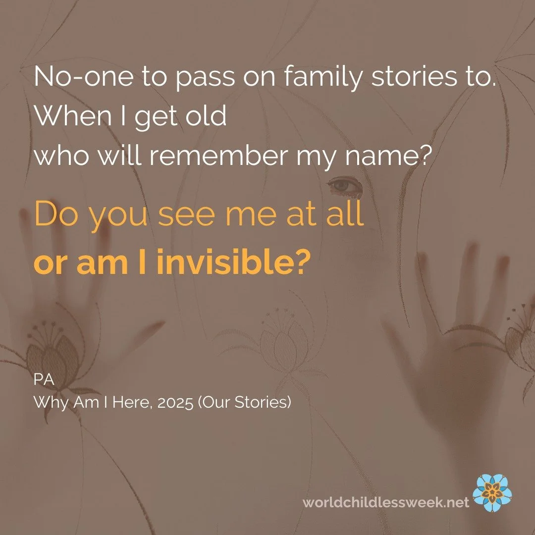 Please note the resources and material provided on this website is for information only and World Childless Week cannot guarantee there are no mistakes or errors. World Childless Week cannot vouch for the services, products or treatments provided by anyone mentioned on the website. Should you act upon any of the information provided on this website, you do so at your own risk.